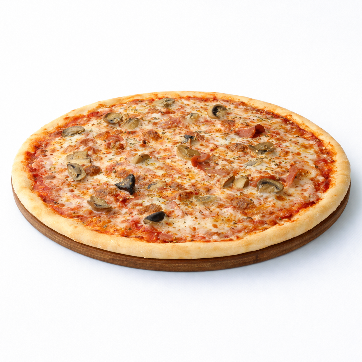 ВЫБЕРИТЕ РАЗМЕР ПИЦЦЫ - 20x17 ИЛИ 35x25. Томатно-сливочный соус, бекон, пепперони, ветчина, артишоки, острый перчик, моцарелла и пармезан.